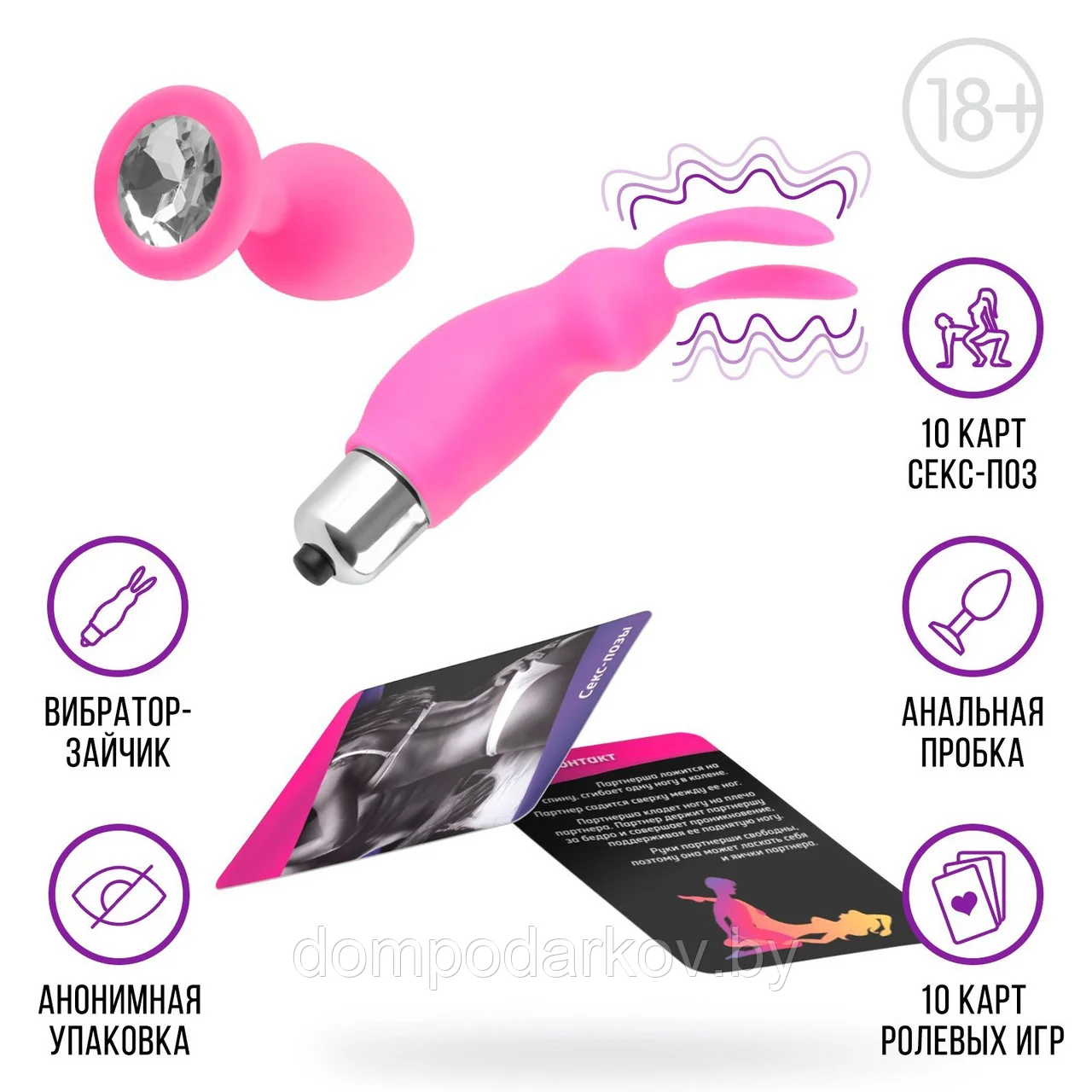 Эротический набор для двоих «Ахи вздохи», 3 в 1 (20 карт, анальная втулка, вибратор-зайчик), 18+В наличии